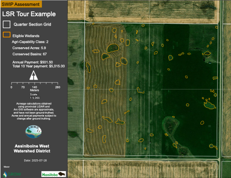 Manitoba Shallow Wetlands Incentive Program (SWIP): The Assiniboine West Watershed District held a field tour on July 31, just north of Delta’s Minnedosa Field Station in Manitoba. This watershed has embraced SWIP and is delivering roughly half of the available funds each year.